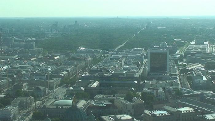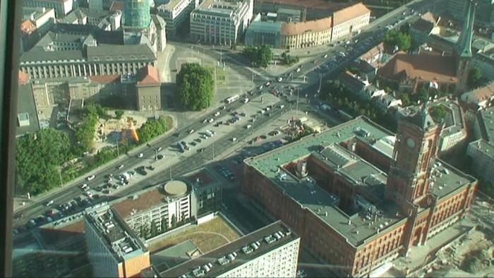 (Метрополитен в Берлине развит очень хорошо). Надо сказать, что в центре города ведётся грандиозное строительство: повсюду котлованы, краны и прочая строительная техника, всё огорожено, и частично перегорожено. Даже рейхстаг оказался обнесённый забором (не весь)… Ну а далее нам открылась панорама Берлина с высоты смотровой площадки берлинской телебашни: