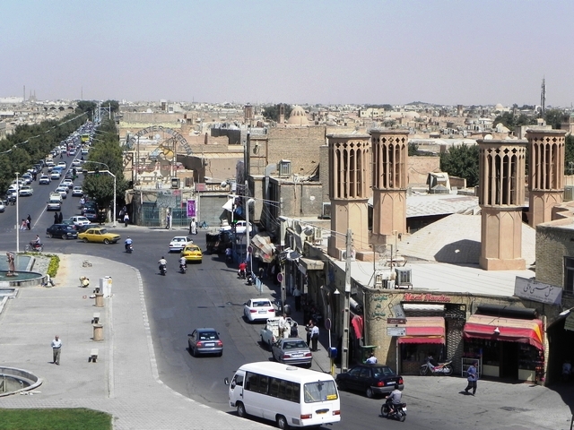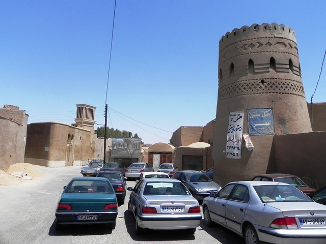 Йезда (Yazd, ﻳﺰﺩ). В городе было на удивление тихо и спокойно — то ли «сиеста», то ли провинциальный статус сказывался. Как обычно, сориентировавшись на местности, я отправляюсь на поиски дешёвого жилья. Но, увы, дешёвое всё занято. Проехав в центр, мы припарковались на теневой стороне улицы