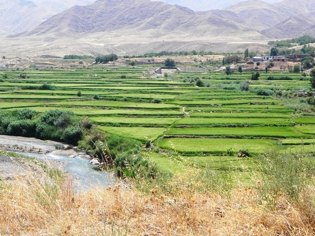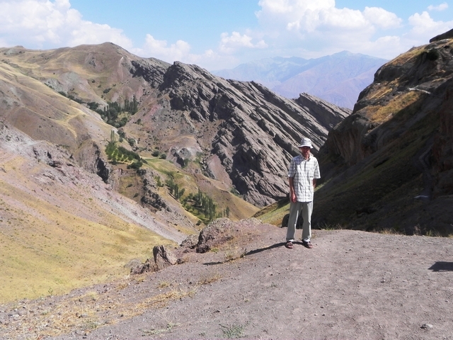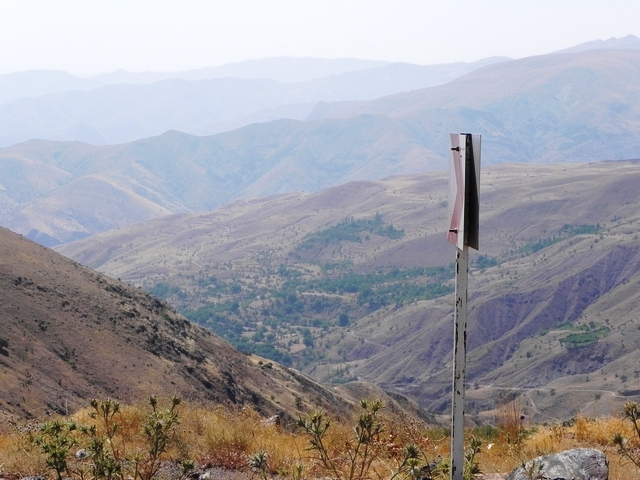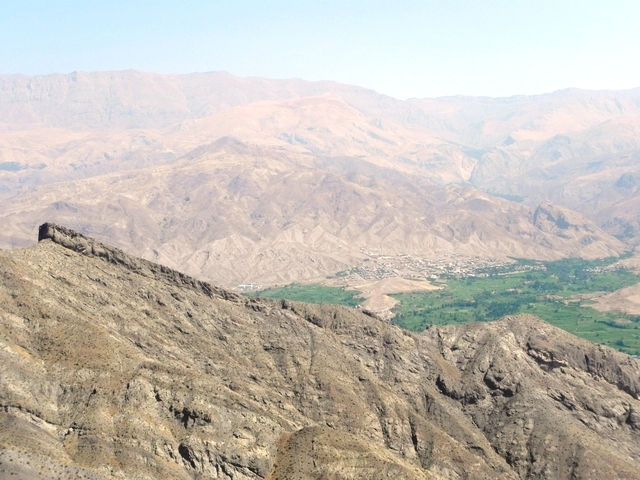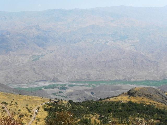 Выбирались из города с затруднениями. Во-первых, нужно было проехать его насквозь по запруженным машинами улицам. Во-вторых, ведёт в долину второстепенная дорога, которую найти было нелегко. Помог таксист, который сопроводил нас до нужного поворота и вручил на всякий случай записку с написанным на фарси названием нужного нам города «ﺭﺍﺯﻣﻴﺎﻥ».