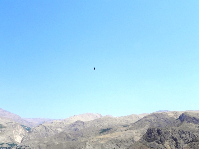 На вершине горы царят тишина и безмятежность. Создаётся впечатление, что время здесь остановилось. И застывший в небе стервятник только усиливает это чувство.