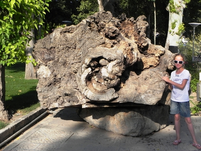 Сейчас во дворце размещён музей с интересной экспозицией. Но на момент нашего посещения он был закрыт. По парку поодиночке прогуливались, в основном, молодые парни. Возможно, пока присматривались друг к другу? :) Таня попозировала около образцов анималисткой деревянной скульптуры,