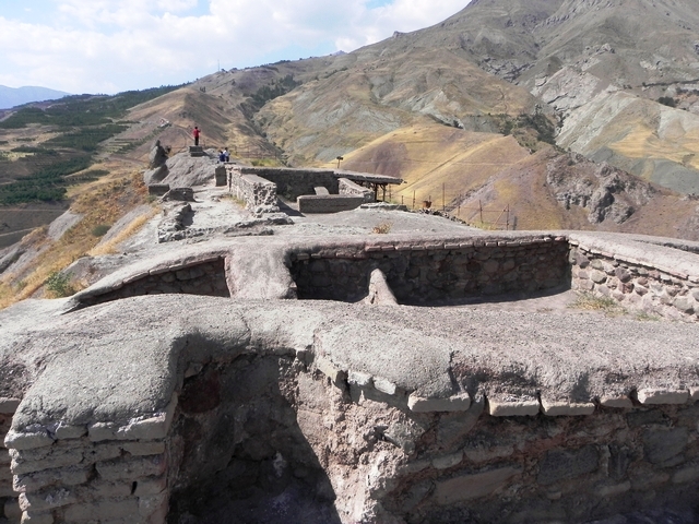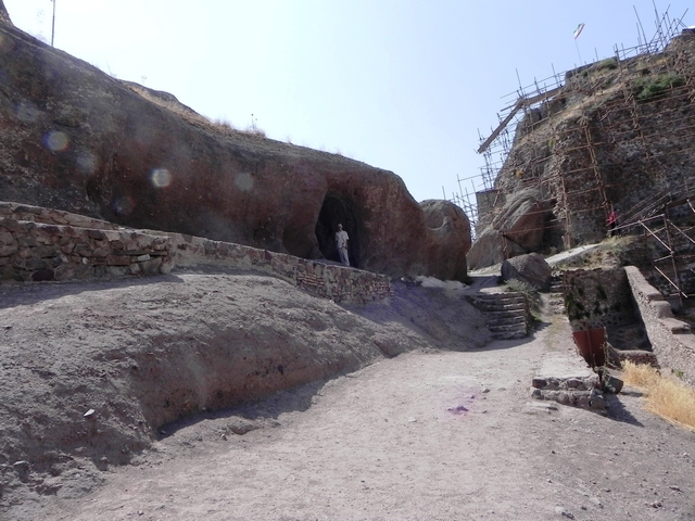 Наконец, добрались до крепости. Её останки находятся на вершине огромной горы и практически сливаются с ней.