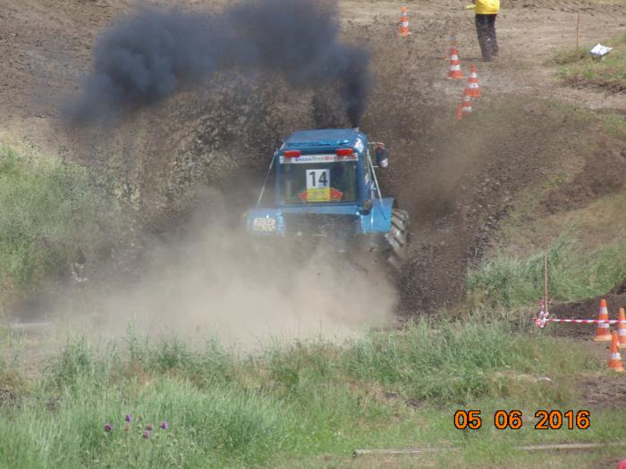 На первом же этапе у одного из тракторов на трамплине лопнула задняя покрышка.