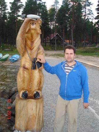 Номера оказались в «Онежской», куда мы подтянулись после прогулки по берегу озера в «Медвежке». Номер трехместный – 1500, но нет ни раковины, ни душа, ни туалета – отдельно на этаже (за душ – плата 140 за человека, но можно, наверное, помыться всем – кто будет проверять). Зато кровати и постельное белье – не чета «дружбинским» из Грязовца – чистое, сухое – ныряешь в кровать с головой. Машин на стоянке перед гостиницей – тьма (тут и москвичи, и питерцы, и конечно мурманчане.