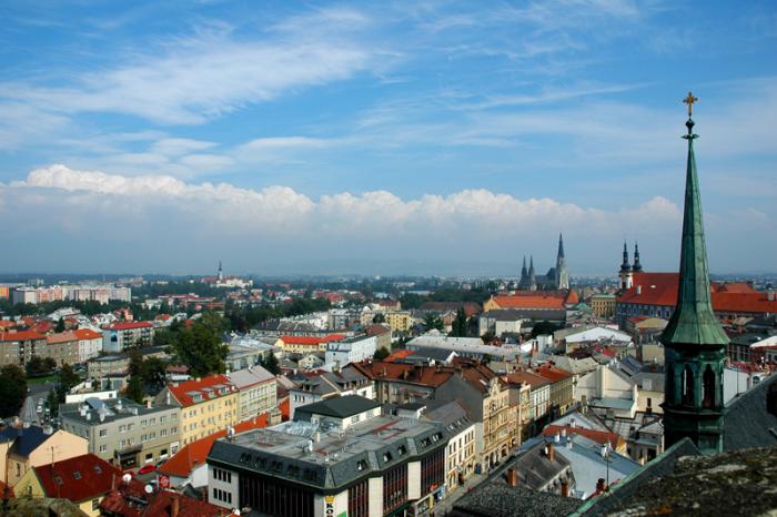 Основным общественным транспортом являются трамваи, они знакомы нам по московским – наши трамваи с округлыми формами как раз из Чехии родом. Напоследок мы залезли на башню со смотровой площадкой в церкви Святого Морица, откуда открывается прекрасный вид на город.
