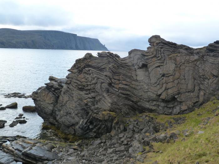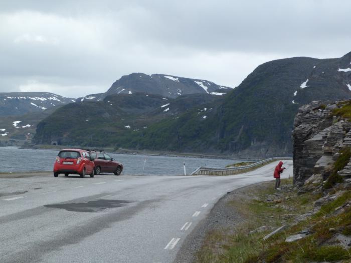 Но дорога Е69, ведущая с острова, тоже очень живописна. По пути туда нам было некогда, а теперь мы не могли не остановиться для изучения удивительных скал, мимо которых она пролегает.