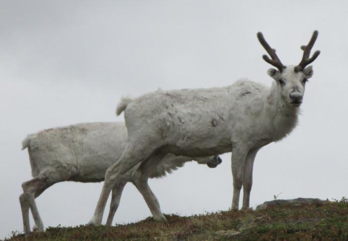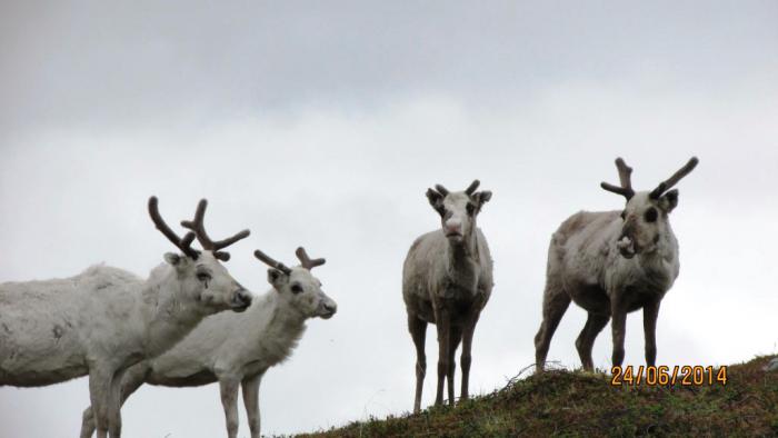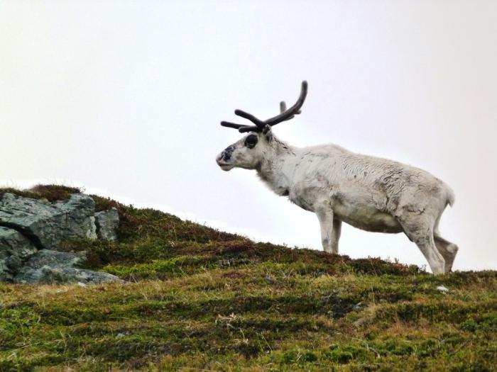 Тропа карабкается круто вверх, а там на возвышенности безраздельно царят северные олени. Групками и по одному они пасутся, прогуливаются, чешутся и настороженно поглядывают на нас. Подпускают довольно близко, но все же погладить не дают.