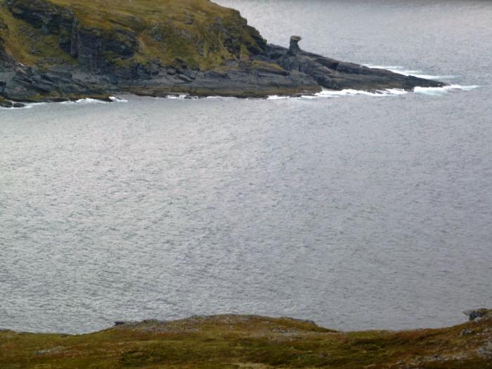 Вскоре, мы уже осторожно спускались к берегу, с удовольствием разглядывая разнообразные по форме скалы этих суровых берегов.