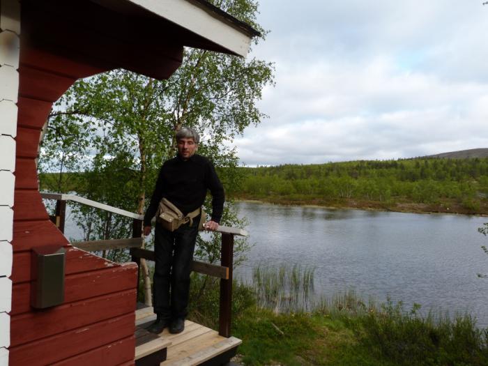 В 19:00 по норвежскому времени (20:00 по финскому) мы пересекаем эту самую фиктивную границу и оказываемся на территории страны Суоми. Можно было тянуть дальше, к озеру Инари и его многочисленным (но слишком популярным) кемпингам. Мы не стали. Увидев минут через 20 указатель, тут же съехали с дороги и обнаружили абсолютно пустой кемпинг Utsjoki. Финн-хозяин, выйдя на наш стук, был одет в футболку и легкие брюки. Он так и стоял там, договариваясь об оплате, а мы кутались в куртки и смотрели на него выпученными глазами. Когда мы осторожно поинтересовались его мнением о погоде, финн, жмурясь, сообщил нам, что в Хельсинки +10, а на наш рассказ про снег на Нордкапе отозвался радостным: «Да! Это наше лапландское лето!» =)