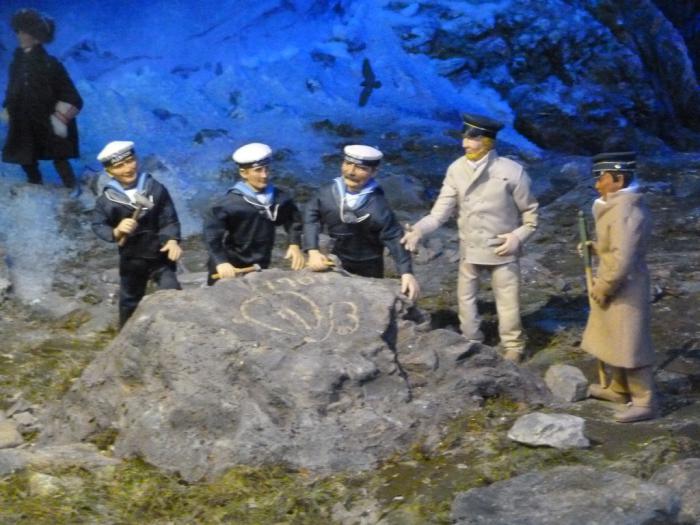 Инсталляции музея показывают, как в 1553 г. англичанин Ричард Чанселлор, путешествовавший в Китай на борту корабля «Эдуард Бонавентура», впервые увидел мыс и окрестил его «северным».