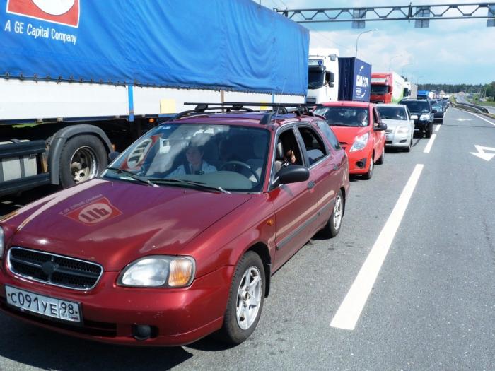 Утром в 10:30 выехали из дома. Воспользовались Западным Скоростным Диаметром, чтобы поскорее выскочить на трассу «Скандинавия». ЗСД теперь платный, за два коротких северных участка отдали 80 руб. По цене за 1 км — самая дорогая платная дорога в РФ, но по сравнению с предстоящими нам тратами — тут и говорить было не о чем. Зато обошли почти неизбежные пробки в Парголово и дальше на Выборгском шоссе. Мама на «Спарке» уже ждала нас в начале трассы «Скандинавия». Отправили к ней в машину дочку — все путешествие она будет главным штурманом «Спарка» и бортовым фотографом второго экипажа. Бабушке оставалось только командовать: «Кадр справа!», и неутомимая Лия бодро щелкала затвором.