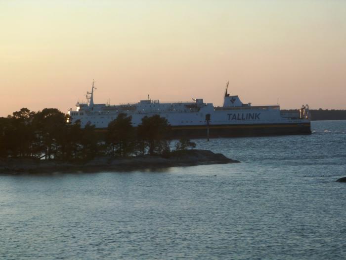 Несмотря на кажущуюся тесноту, в каюту поместилась и удобная душевая, и прихожая. Панели на стенах откидываются, превращаясь в койки. Поужинали мы своими припасами да на боковую. Белые ночи для питерцев — дело привычное, спать не мешали. Качка на этой громадине вообще не чувствуется, а как наш паром ночью останавливался на Аландских островах — я даже не заметил. Впрочем, изредка все же просыпался и через иллюминатор любовался проплывающими в призрачном ночном свете паромами-конкурентами…