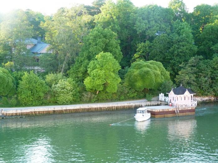 По нашим наблюдениям, финны очень любят дачи. Только отдыхают они там как-то странно. Вместо того, чтобы, как нормальные люди, попой кверху работать на огороде, этот отсталый народ предпочитает на отдыхе ничего не делать! Просто сидеть, смотреть на воду или лес и бездельничать (ну или заниматься активными видами спорта, но тоже без всякой пользы). Безобразие, конечно. Впрочем, на этих скалах особых огородов не разведешь, хоть это и слабое оправдание. =) Большинство финнов при этом, выезжая на природу, условия выбирают самые простые, домики без удобств и т.д. Отдыхают, понимаешь ли, от цивилизации! Но дачи, которыми мы любовались в финских шхерах и фьордах, в эту категорию не вписываются. Их хозяева озаботились не только удобствами, но и транспортными средствами для связи с цивилизованным миром.