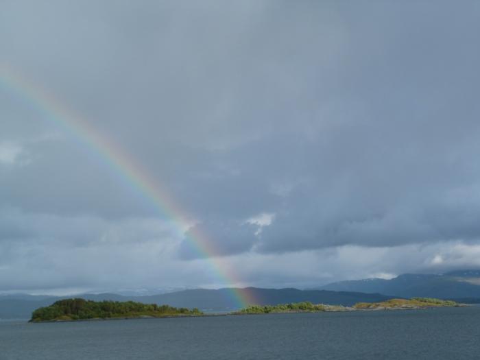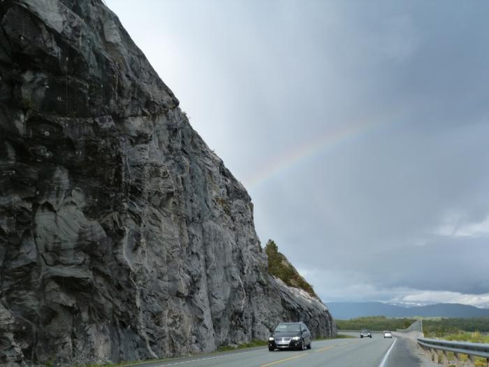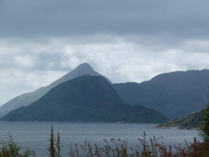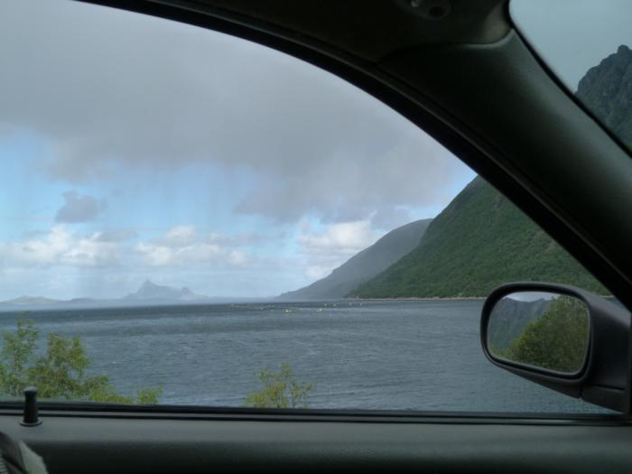 Нельзя сказать, чтобы беспросветный ливень, порой и солнышко проглядывает, но на горизонте всегда, чтобы не расслаблялись, «дожди, косые дожди». И вот так весь этот день. «Осенняя» Норвегия обстреливала нас предупредительными дождевыми залпами, нависала, угрожала, мрачнела. А мы не пугались, и как результат умудрились перехватить немало запоминающихся и ярких картинок. Да что далеко ходить. До нашего первого на сегодня парома ехать-то всего ничего, но виды, виды…