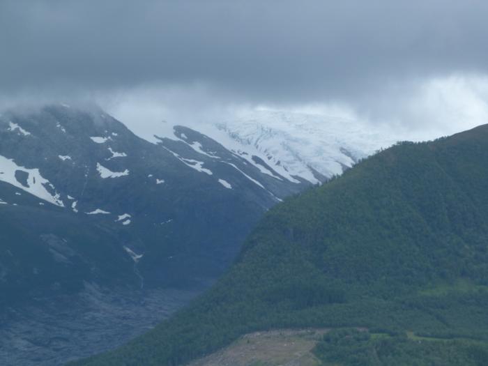 Представив себе эту же многочасовую прогулку в сильный ливень без возможности сбежать в машину досрочно, я наступил себе на горло и объявил общий сбор. Едем дальше. Ехидный штурман записала в борт-журнале: «15:00 — обливаясь слезами, уехали от ледника». Собственно, кроме меня никто не переживал по этому поводу, всем хватило и картинки издалека. Но для меня это осталось единственной неудачей путешествия. Мы вообще в этой поездке много куда не попали, много чего не посмотрели, но я к этому относился философски. Посмотрели ведь тоже немало! А вот Свартисен — очень жалко. Как говорит мой любимый клинический психолог aka «жена»: «Гештальт не закрыт». Придется все же где-нибудь до ледника добраться, в Норвегии ли, если Бог еще когда приведет, или на Кавказе, куда теперь очень хочется съездить…