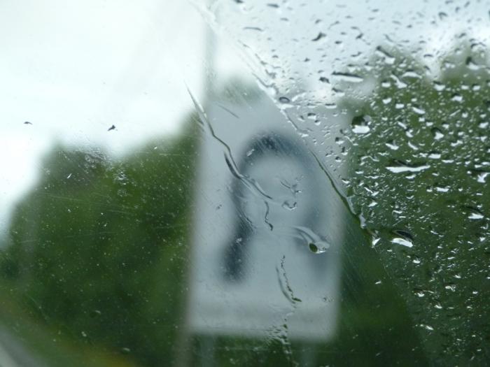 Периодически, нас накрывает дождем, да так, что самая популярная социальная реклама на дорогах Норвегии — наполовину расплывшаяся «от скорости» девочка — расплывается уже целиком.