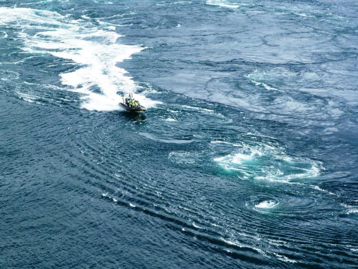 Приглядевшись, можно увидеть множество чаек и прочей птицы над водоворотами. Это понятно — течение кишмя кишит рыбой и прочей вкуснятиной. Так что рыбаков на береговых скалах тоже хватает. А еще воронки Saltstraument привлекают любителей экстрима, старающихся подобраться к ним как можно ближе.