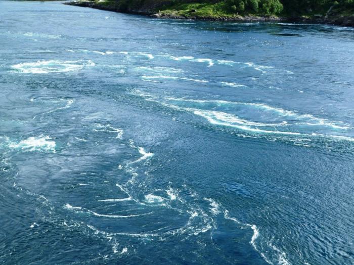 К 17:00 мы приезжаем в Saltstraumen, чтобы полюбоваться знаменитыми водоворотами. Северная Норвегия славится морскими водоворотами. Не так далеко отсюда находится знаменитый Лофотенский Мальстрим (Maelstrom), ставший именем нарицательных в западных языках для масштабных водоворотов. Хотя у местных он называется Moskenesstraumen. Именно в нем Жюль Верн утопил подводную лодку «Наутилус» (ну, почти утопил, потом жалко стало, и она всплыла в другом его романе, «Таинственный остров»). Эдгар По тут еще раньше отметился, утопив в «чудовищном водовороте» рыбацкое суденышко почти со всей командой.