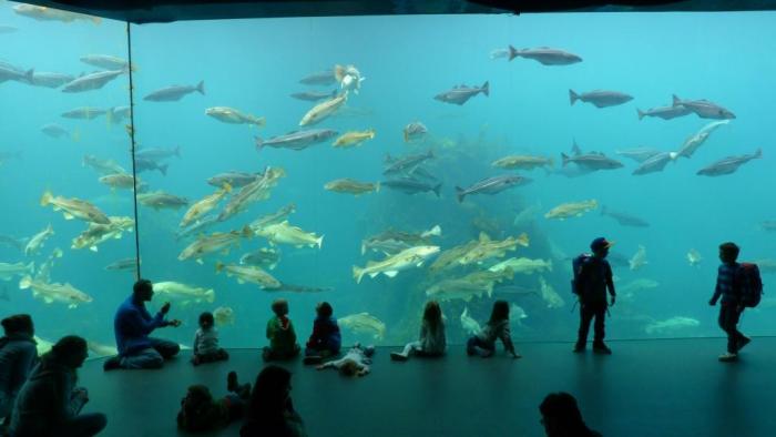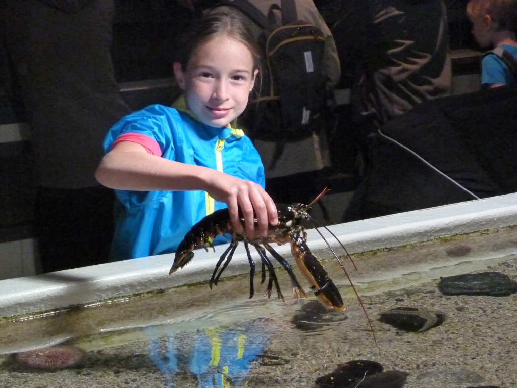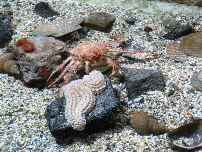 Не скажу, чтобы коллекция Аквариума потрясла меня своим разнообразием. Скорее, впечатляет грамотный и продуманный подход к организации развлечения, которого часто не хватает в наших музеях и зоопарках. Конечно, тут хватает обязательных резервуаров с морской нечистью и чучел глубоководных обитателей Атлантического океана, из тех, кому в резервуарах не хватало бы давления для нормальной жизни. Но кроме того здесь есть открытый бассейн для детей, где трижды в день им разрешают ловить голыми руками всевозможных обитателей моря. На веревочки с приманками (без крючков) в отдельном бассейне можно удить крабов. Правда, оказавшись над поверхностью воды, крабы сразу же забывают про жадность и с плеском падают обратно в бассейн. Дети пищат от восторга.