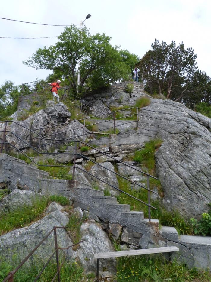 Разумеется, гора Аксла, настолько явно доминирующая над окрестными водами, не могла не привлечь внимание военных. В годы II мировой немцы построили здесь несколько береговых батарей. Но пушки возле лестницы из другой оперы. Это «пожарная сигнализация» — последний раз из них стреляли в том страшном 1904 году, но тогда они стояли поближе к жилым домам. Поскольку от выстрелов в домах стекла вылетали, пушки сослали на гору.