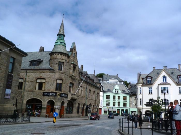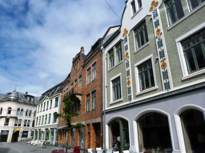 Олесунну и самому повезло. В эти края регулярно приходил на яхте в отпуск кайзер Вильгельм II. Услышав о пожаре, он выделил средства на обустройство погорельцев, отправил корабли со стройматериалами. Как раз вовремя на родину вернулись 30 норвежских архитекторов, получавших образование в Англии и Германии. У них, естественно, был сильный зуд: на ком-нибудь попрактиковаться. В итоге, город был весь выстроен заново в наимоднейшем стиле модерн, он же «ар-нуво», он же «югендстиль». Причем, отстроили город всего за 3.5 года, благо в стране в это время была чудовищная безработица, и в рабочих руках недостатка не было. С тех пор туристов сюда как магнитом тянет: все же обычно дома этого стиля разбросаны среди других архитектурных направлений, а здесь настолько масштабный ансамбль.