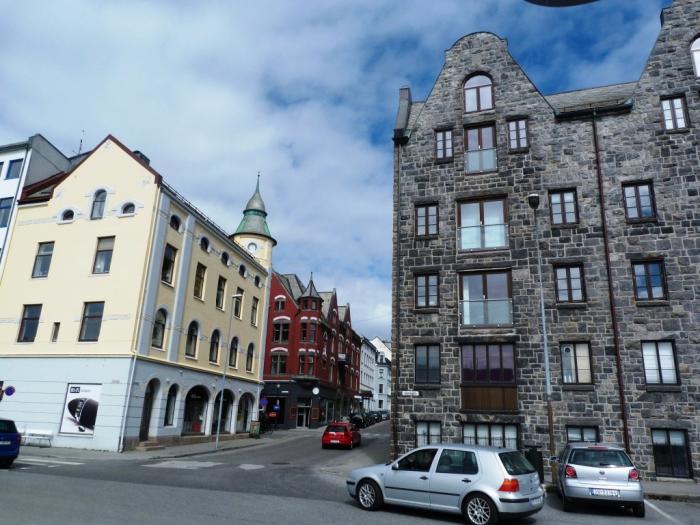 Выковыряв отпрысков с качелей, мы отправились бродить по эффектно взмывающим и изгибающимся улочкам новодельного и новостильного (ладно, югендстильного) города. Как полные дилетанты в архитектуре, мы не могли найти принципиальных отличий между «самыми типичными зданиями» ар-нуво и их ближайшими соседями. Но общее впечатление было очень приятным. По Олесунну безусловно стоит побродить, а не ограничиваться взглядом сверху.
