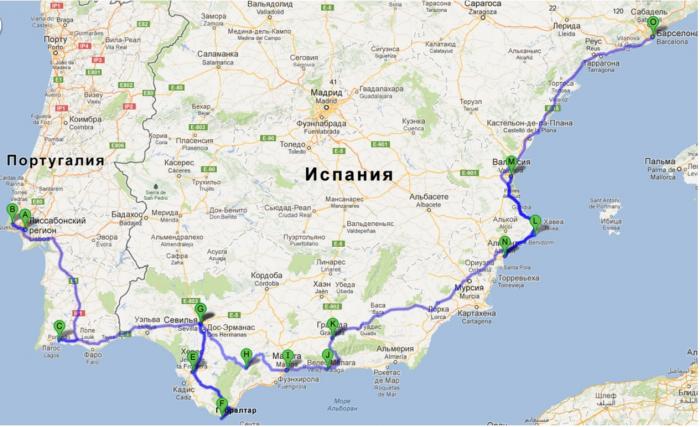 Километраж: от Лиссабона до Барселоны получилось 3920 км. со всякими мелкими крючками и пешими маршрутами