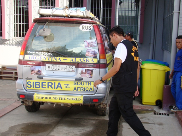Я – на дыбы. Как звучит слово СУД ни по-английски, ни по-испански – не знаю. И в разговорнике нет. Говорю – машина – русская. Ключи – мои. Машину – арестовывайте. Ключи – не отдам. Предлагаю перегнать свою машину лично на паркинг. Показывают угол в 50 метрах под окнами начальника. Собираем вещи в маленький чемодан. Достаю карне де пассаж. Из тайника в машине вытаскиваю бытылочку из-под Йогурта с затыренными в неё 7000$. Это НЗ. Страховок у нас по традиции опять никаких. Нужно иметь «страховой резерв». Потом охранник говорит – вы должны вытащить из машины ВСЁ. Мы, конечно, очень компактные путешественники, но за 8 месяцев путешествия даже у нас скопилось кое-какое барахло. Короче, на себе мы это всё переть не хотим. Я начинаю тему, что ставлю палатку у них на газоне и жду подтверждение бумажки здесь 10 дней. Вроде минут через 20 с вещами смирились. За ключом от машины охота продолжается. Когда я вставил ключ в замок зажигания, что бы таможенники смогли переписали пробег, мне пришлось из под плеча таможенника выдёргивать ключ. Потом я не смог бы его у таможенника отобрать обратно. Про ключ спросили раз 50. Я был твёрд. К нам пришёл начальник Суната. Уже разговаривает, а не смотрит в сторону. Тоже просит ключ. Я его уже спрятал у мамочки. Старый навык, когда тебя пьяного ловят ГИБДДшники сработал. Я готов к шмону – Родину не сдадим.