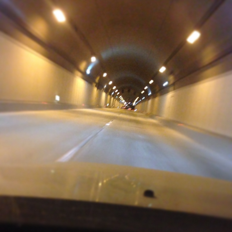 Выезжать из вечно меняющегося олимпийского города было сложно, найти указатель в сторону Адлера из центра просто не реально. И по разбитой улице, где слева идет стройка, смогли выбраться на объездную и эти редкие и короткие тоннели, все что запомнилось на данном участке дороги.