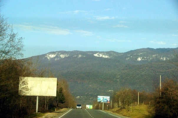 От прекрасных пейзажей скорость движения упала до пешеходного уровня, куда не посмотришь, везде красота. Горы, море буквально рядом. Отсутствие безумного потока транспорта, который даже в летний сезон не большой, делает передвижение по Абхазии наслаждением. Портило только одно: наличие лежачих полицейских в городах и не везде наличие знаков скоростного движения.