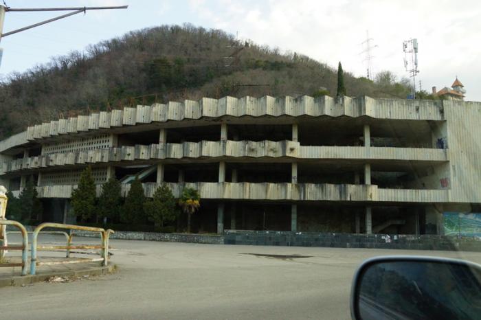 Первый город, через который мы проезжали был Гагра. Дороги бесподобные, ровные, без ям. Очень много заброшенных зданий на всей территории Абхазии, везде все чисто и нет вандализма, который можно встретить в России.