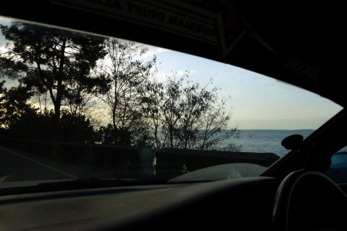 Адлер проезжали в 7мь утра. И случилась не приятная ситуация, на олимпийской дороге лежал огромный камень (с размер кирпича), который в следствии пыли, отсутствия освещения был не замечен мной, наехав на него погнул глушитель. Слава Богу, следующая за мной машина успела увернуться от него. Из-за данной ситуации мы пропустили поворот на п. Веселый. И теперь, чтобы развернуться нам пришлось вновь проехать весь Адлер, по пути мы наконец нашли еду и интернет (два дня до этого в Краснодаре не работал интернет на операторе beeline). Покушали, наступило утро и пробки во всю длину Адлера. Так мы и ехали до пограничного контроля в поселке Веселый. На будущее поняли для себя, Сочи нужно проезжать ночью. Это вечные пробки.