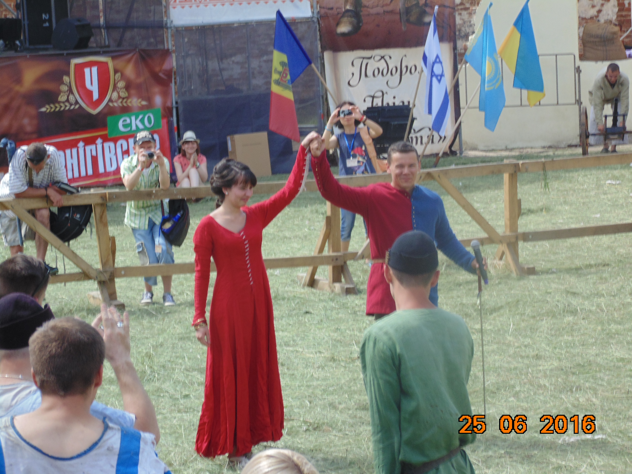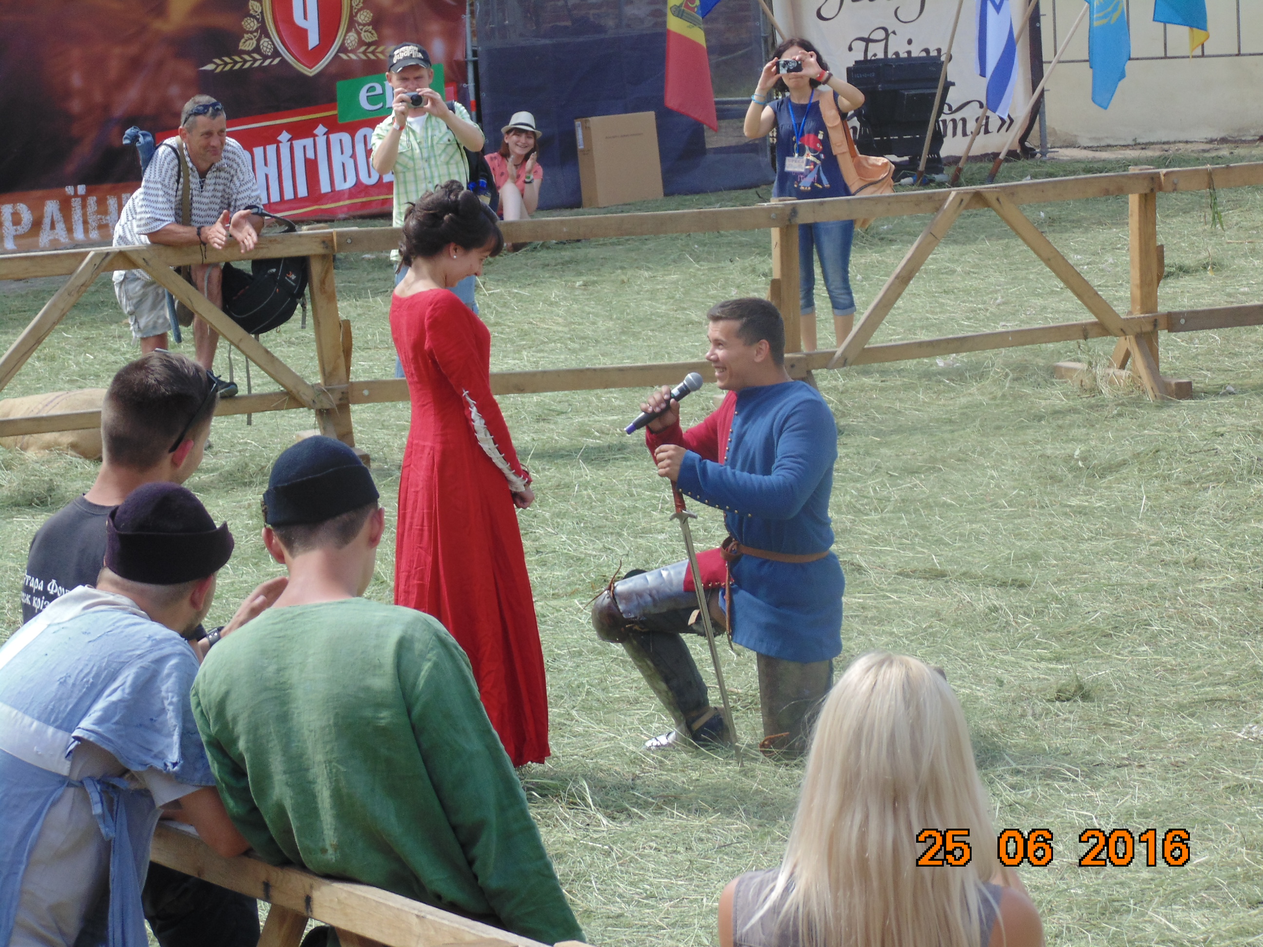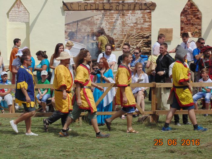 Вокруг Круглого Двора гудела ярмарка: медовуха, мед, квас, шашлык, изделия народного творчества и т.д.Неожиданно паренек с мечем попросил руку и сердце у дамы.Она согласилась, мы дружно кричали«Горько».