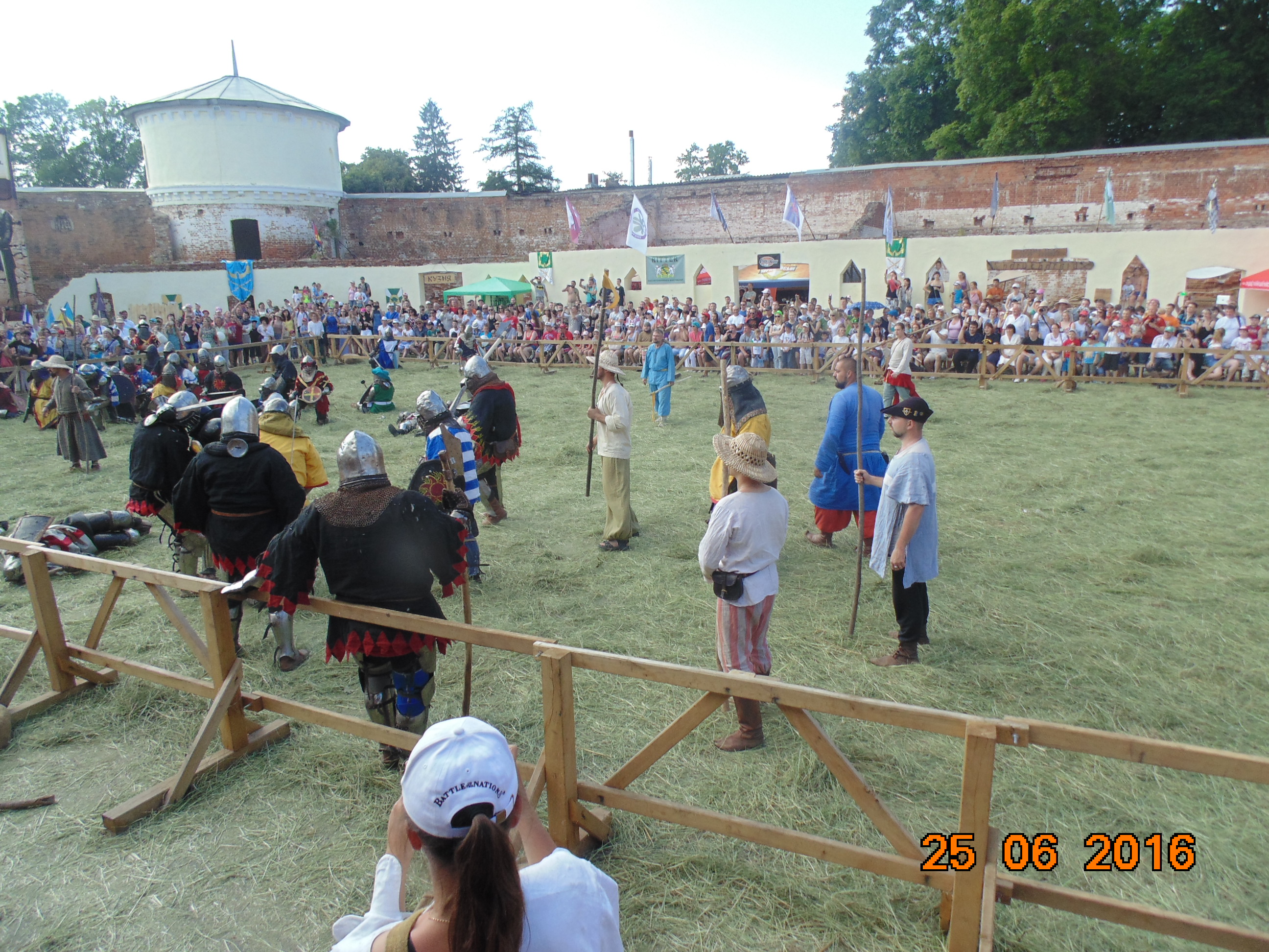 Ну и основное действо-королевский бой 21 на 21, на ристалище 42 бойца.Каждого судьи проверяют на защиту.Бой.Сходятся 42 мужика в доспехах.Впечатляет