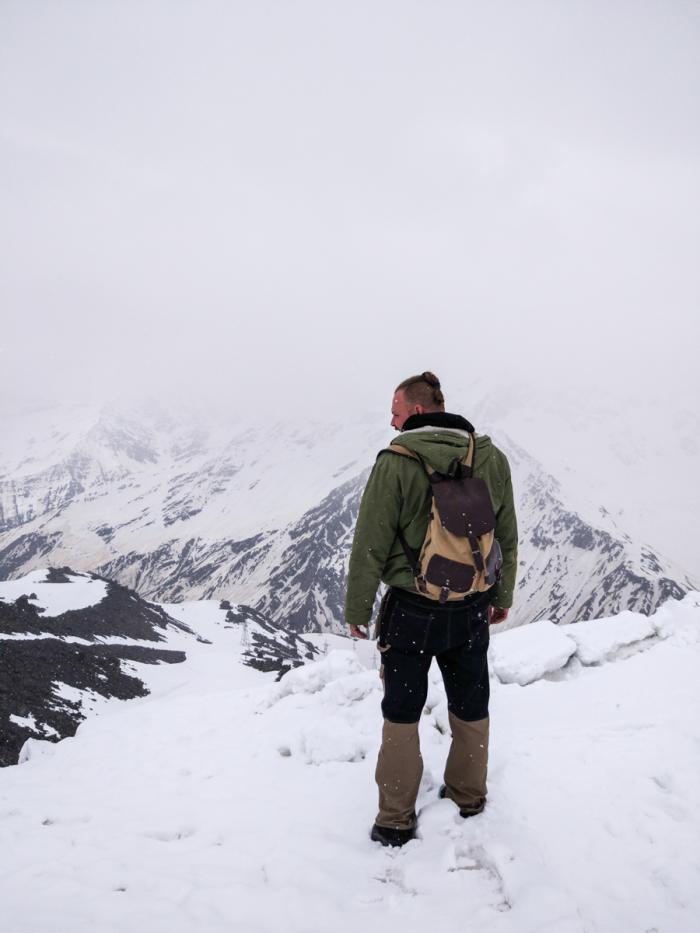 Первая остановка 3000, туман и дождь, но и так виды внушающие восхищение и ощущение своей микроскопичности в этом мире. Скорее и выше! 3455 снег, под нами молоко, прыгаем по невероятно белым сугробам как можем…