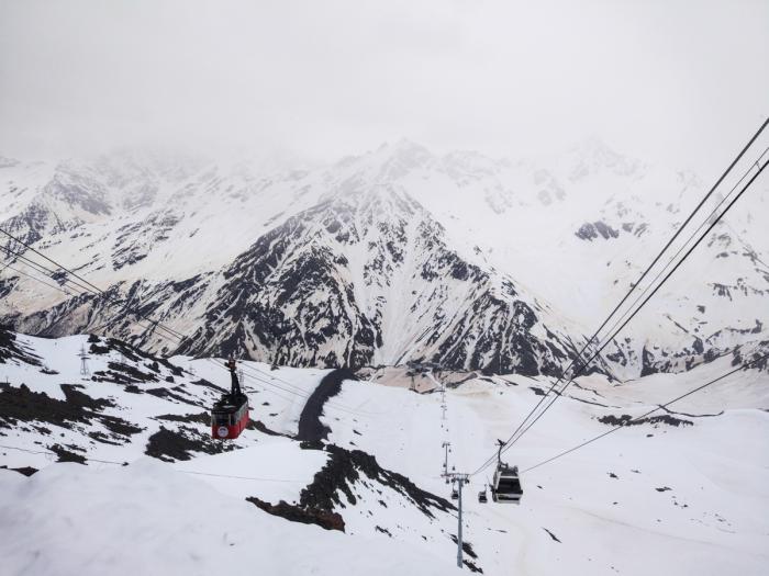Густая облачность и дождь, понятно, что мы ничего особенно не увидим, но сама мысль о том, что мы побываем на Эльбрусе, на высоте, на которой в жизни не были. Да, не на вершине, да, не своими ногами, а на милых французских подъемниках, пока так, но это же невообразимо!