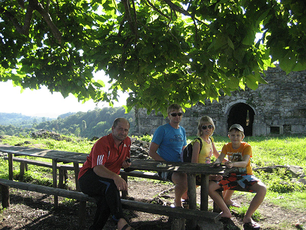 В этот день нашего пребывания в Абхазии, наконец-то выглянуло солнышко. Погода стала налаживаться. Хозяин дома, где мы остановились пообещал во второй половине дня отвезти нас в горы к Бедийскому храму (сами мы деже если бы и нашли дорогу, то точно бы по ней не проехали). Она совсем не для иномарок. После разрушительной войны в Абхазии её так и не восстановили.