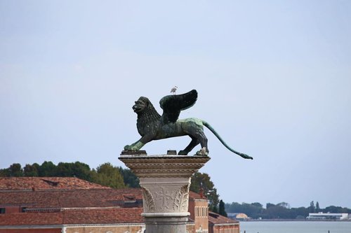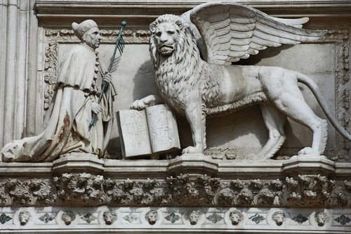 Кстати, когда Венеции было туго, и она вела войну на своей территории, то льва ставили без улыбки и книга у него была закрытой и обычно просто лежала под лапой.