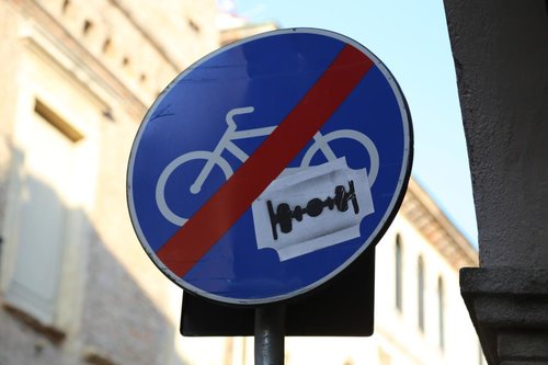 Падуя в своих пешеходных зонах борется с велосипедом, часто видели знаки, запрещающие движение для велосипедистов, и очень оригинальные знаки, советующие не оставлять свои велики на стоянку.