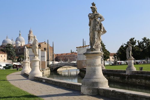 Падуя имеет потрясающую по красоте площадь Прато делла Валле. Город, конечно, и сам по себе очень интересный. Но эллипс канала с двойным рядом статуй, портиками, мостами и фоном из куполов на заднем фоне останутся в памяти навсегда.