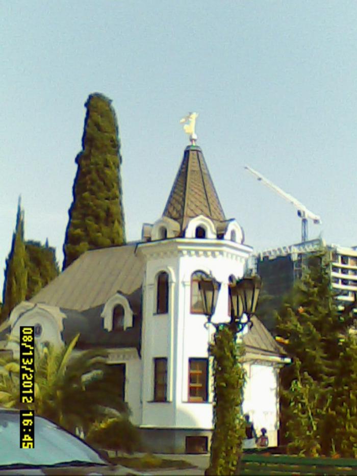 12.08.12г. Накануне забрали машину из ремонта. Ремонт вентилятора обошелся в 5000р. Так как в Сочи нам уже поднадоело, все «обползали», решили скататься в Абхазию, благо близко. Границу прошли за 40мин. Думали долго, как показал потом опыт прохождения других границ, это было быстро, да и поехали мы в воскресенье.Когда стояли на границе, загорелся значок аккумулятора, когда поехали, погас, не придали этому значения, потом оказалось, что зря. Первое место посещения-город Гагры. Башня Гагрипш.
