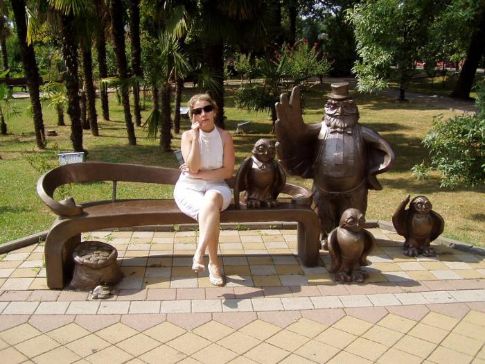 Недалеко от морского вокзала стоят бронзовые фигуры героев фильма «Бриллиантовая рука».