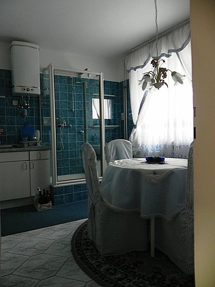 Не менее романтична и кухня, совмещённая с душем. Но нас таким сочетанием не удивишь – уже встречали когда-то в Люксембурге