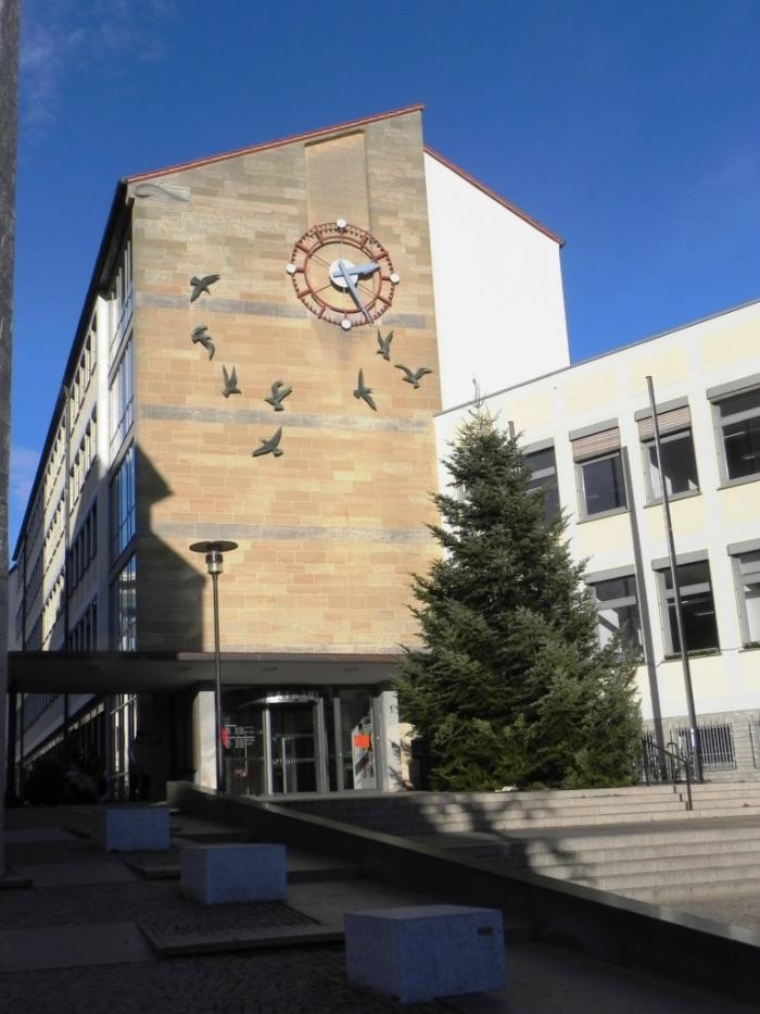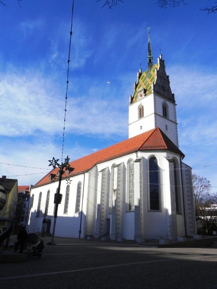 А затем отправились на площадь Аденауэра, к церкви св. Николая. Если бы не война, то это сооружение, наверняка, было бы одним из самых древних во Фридрихсхафене. Впрочем, и её современный внешний вид довольно привлекателен – благодаря мозаичной крыше колокольни, которая навевает мысли одновременно о Вене, Загребе и Боне.