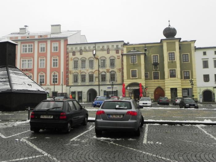Увы, но непредсказуемость зимней дороги вынуждала меня ответить отказом на этот призыв. Наше знакомство с городом ограничилось лишь площадью Республики, на которой прописан отель «U Divadla». Здесь расположен окружной суд, который я поначалу принял за здание муниципалитета – смутила массивная часовая башня.
