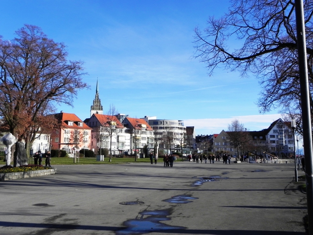 Достигнув, таким образом, душевной гармонии, мы отправились на изучение Фридрихсхафена. Поскольку первоначальной целью были достопримечательности, расположенные за пределами исторического центра, за неимением компаса, шли по наитию и ориентировались по солнцу. Снегом здесь даже и не пахло. Но тогда мы не могли даже и предположить, что следующим днём, когда небесное светило будет столь щедро одаривать нас своим скудным зимним теплом, окажется последний день пребывания в этих краях.