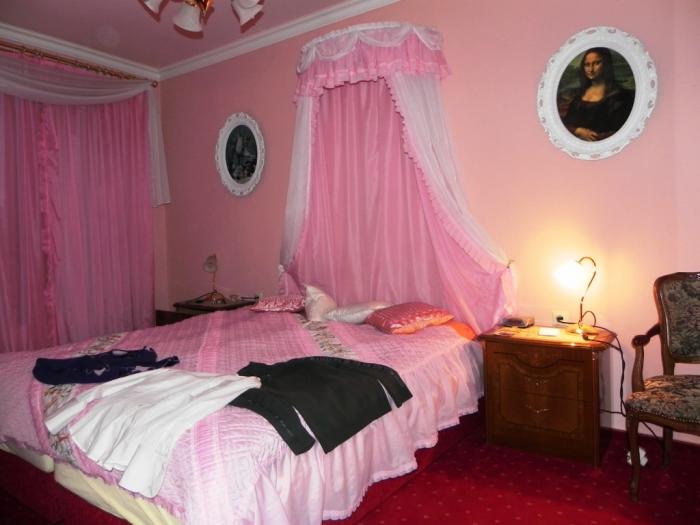 Романтичная розовая спальня повеселила нас ещё накануне вечером – прям идеальное решение для медового месяца (или недели).