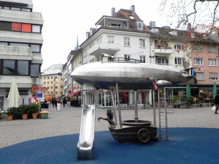 Впрочем, это всё мимолётные наблюдения. Гораздо больше интересуют нас те объекты, где авторский замысел можно понять без фантазийных галлюцинаций. Их в городе немало, но все они, так или иначе, связаны с мегафишкой Фридрихсхафена – дирижаблями.