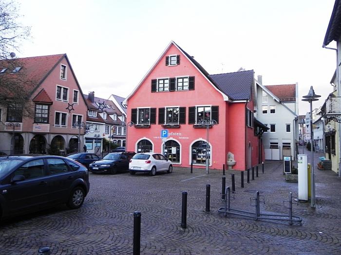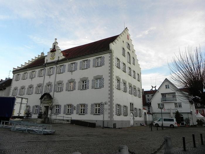 Даже не будучи семи пядей во лбу, нетрудно догадаться, что там, где есть Новый дворец, должен быть и Старый. Без труда разыскав его, мы убили сразу двух зайцев: ныне Старый дворец Тетнанга является Ратушей. Но у меня его чёрно-белая полоска ставней почему-то ассоциируется с почтой.