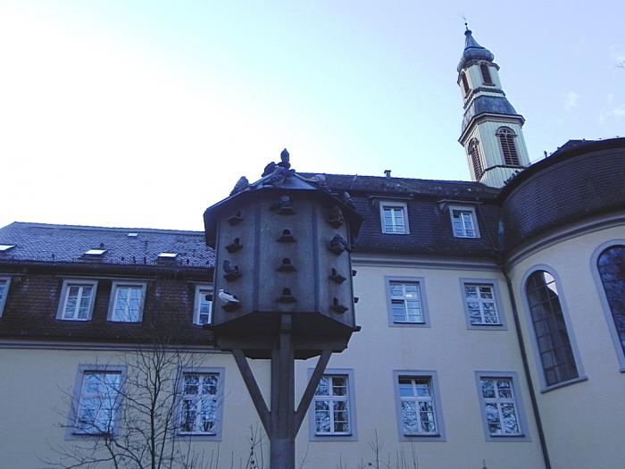 Поскольку в ходе наших поездок я всегда отдаю приоритет архитектуре, зачастую, прочие детали ускользают от моего внимания. Поэтому, случайно обратив внимание на что-либо периферийное, я испытываю какой-то детский восторг. В Равенсбурге таким объектом оказалась муниципальная многоуровневая голубятня. Интересно, там за каждой птицей закреплено персональное место или всё работает по принципу «кто не успел – тот опоздал»?